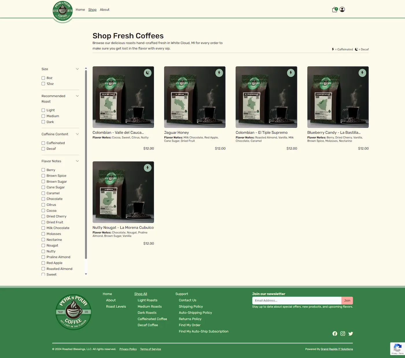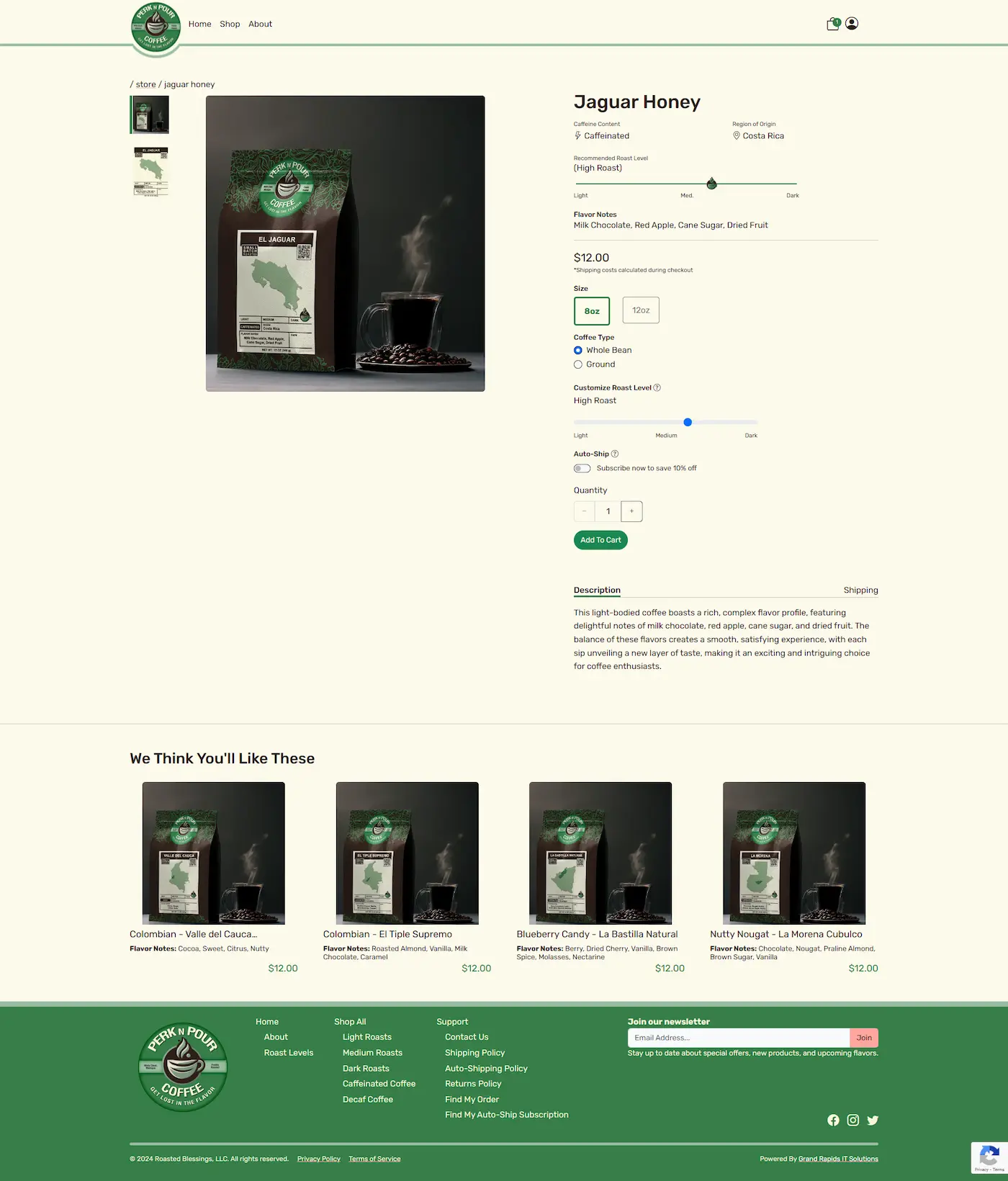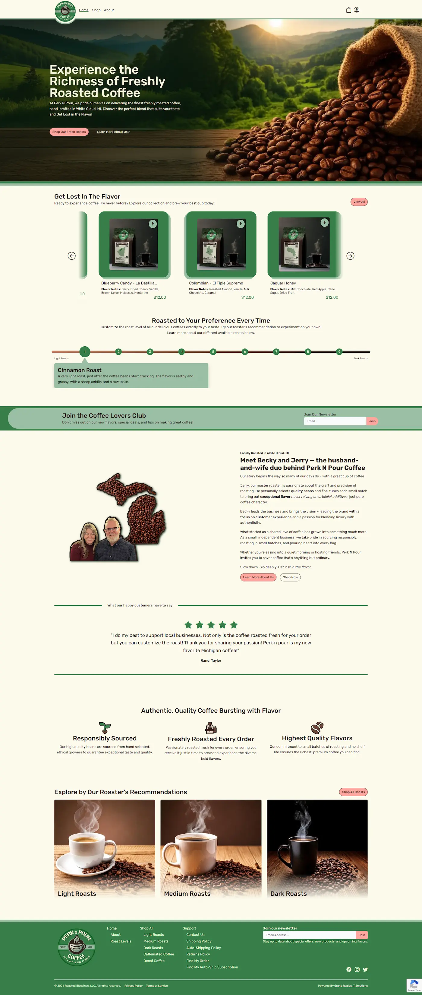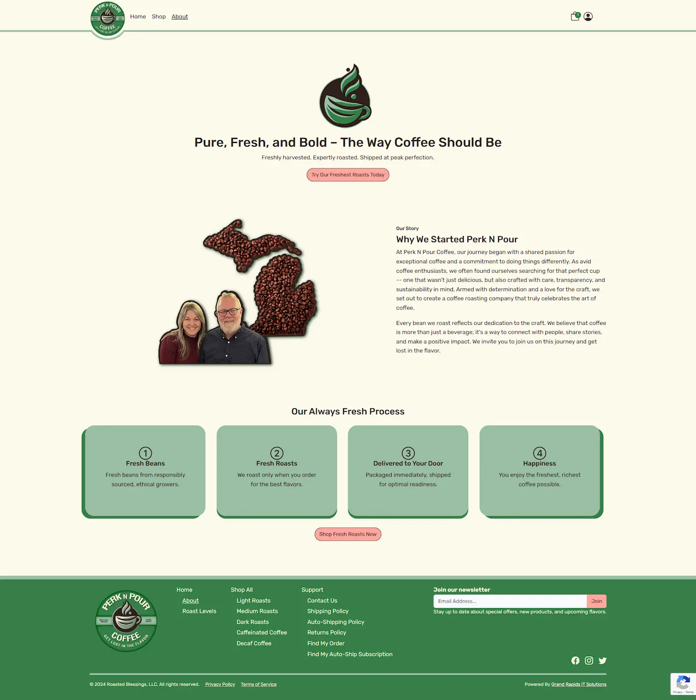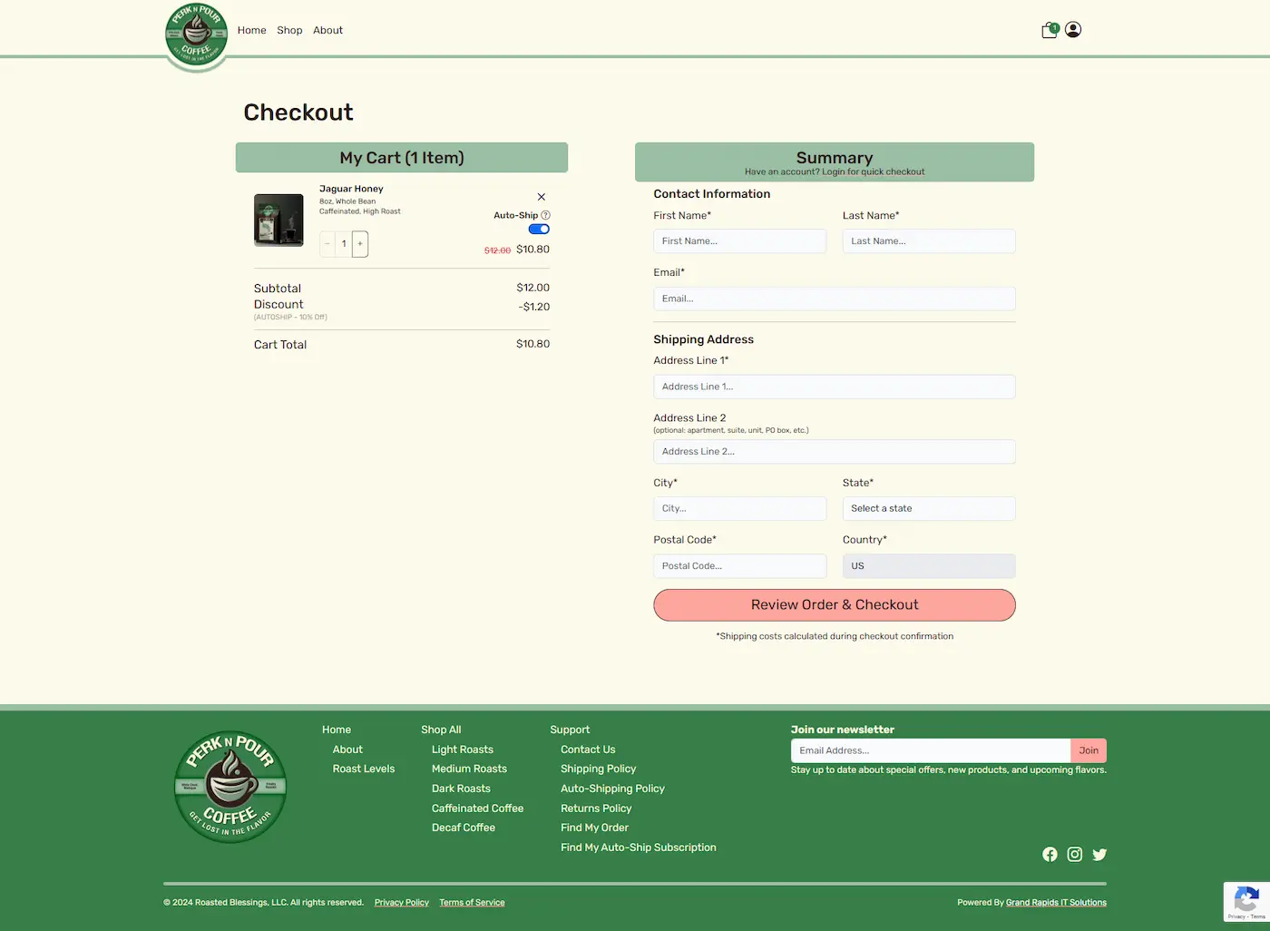 Unlike clients stuck with restrictive proprietary e-commerce platforms, Perk n Pour now owns a codebase that can immediately adapt to any new business need. Whether introducing a new coffee blend, changing fulfillment strategies, or adopting a different payment method, the custom-built nature of the site guarantees future scalability without reliance on third-party limitations, ensuring their technology supports their growth, not hinders it.Full Site Preview