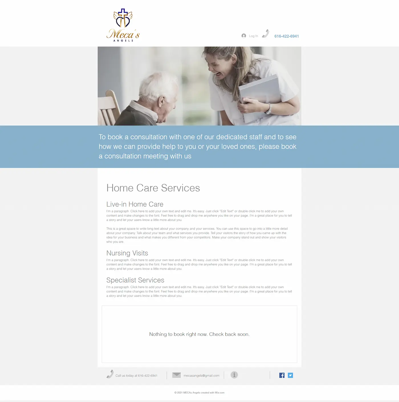 The primary website was built on an outdated Wix template, giving a DIY impression that contradicted the professional, registered nurse-level services they offer.Incomplete Information